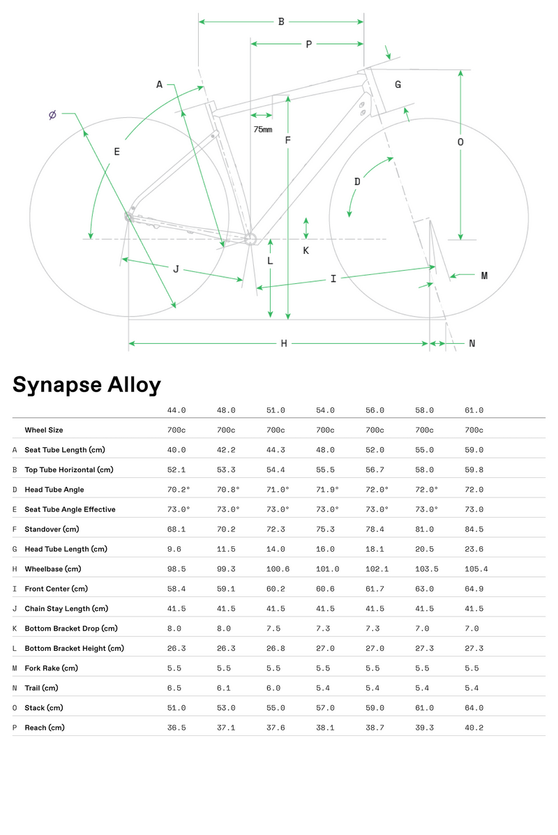 Here is the reformatted list for this Synapse build, featuring the Shimano CUES drivetrain. I’ve kept the structure consistent with your previous models for a clean Shopify storefront.